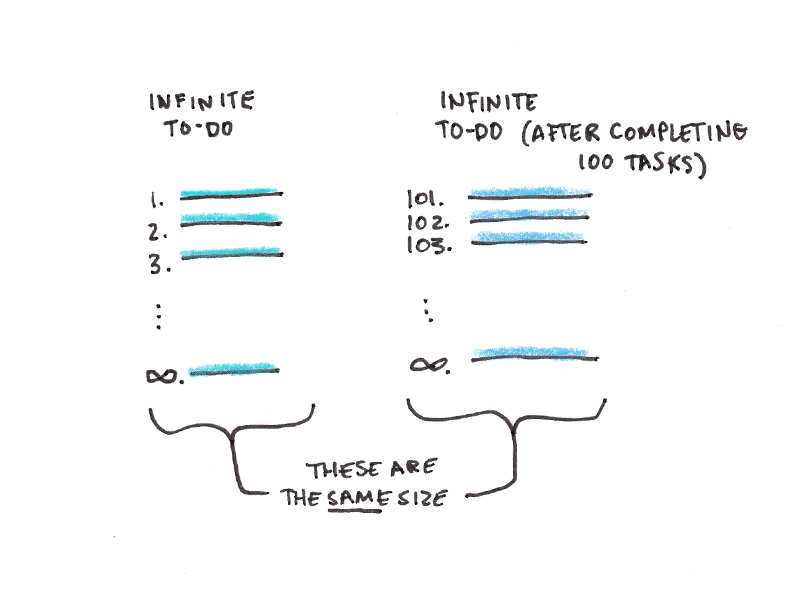 But we can’t get it all done. An infinite to-do list will still have an infinite number of things on it, no matter how many tasks you check off. The high-performing productivity pessimists I encountered in the course were judging themselves by a standard that is impossible to reach.