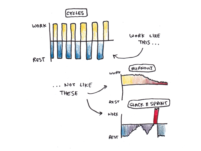 Schwartz and Loehr found that their typical client is overworked mentally and underworked physically. They work long hours, but sleep and exercise little. As a result, their capacity for productive work falls, and as they slip further from their “theoretical” productivity goals, as defined by time management, they resolve to work ever harder to make up the gap—further entrenching their exhaustion and decreasing their capacity.