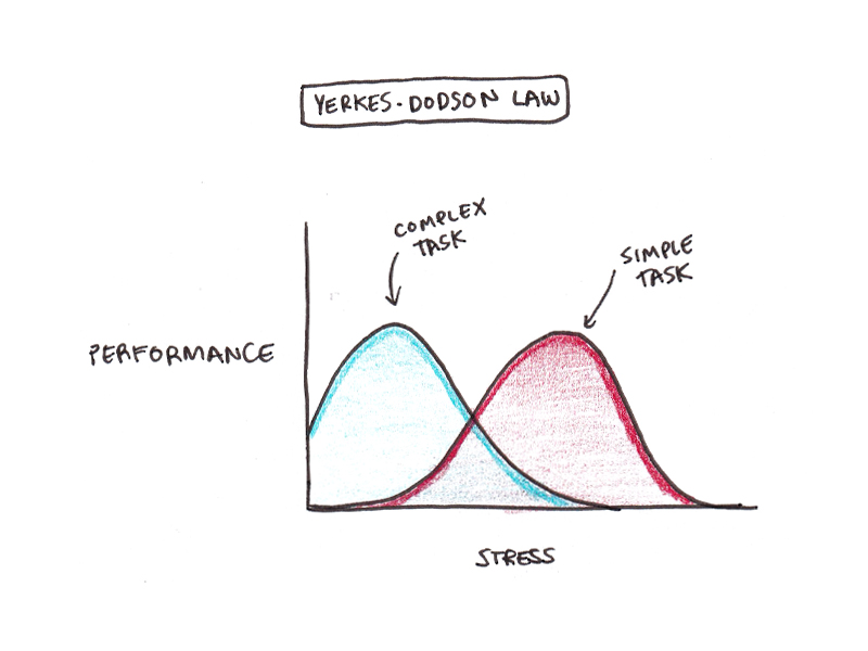 Robert Yerkes and John Dillingham Dodson’s eponymous law noted that for relatively simple tasks, such as running away from a lion, higher stress improves performance. However, for complicated tasks, like remembering the quadratic equation in the middle of an exam, lower stress is generally better.