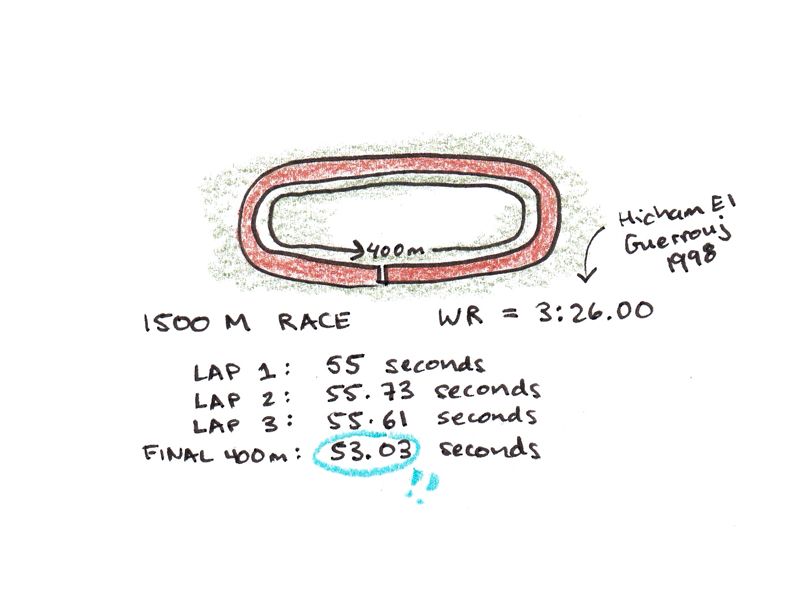 Hutchinson wasn’t alone in his peculiarity, however. It turns out that world-record runs show the same pattern of a dip in pace followed by a slight acceleration toward the end of the race. Even the most well-trained, disciplined and motivated runners must be holding something back.