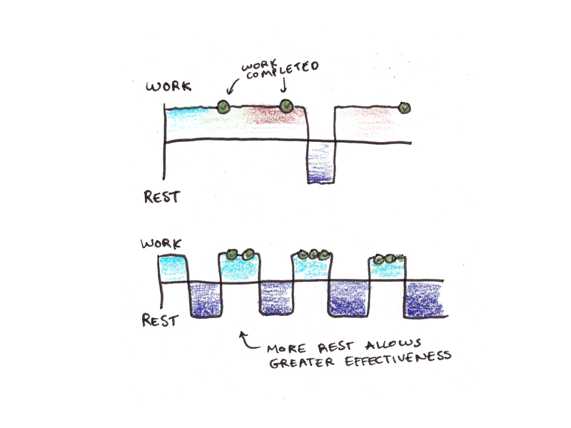 I bring all of this up because a key idea in energy management is working within natural rhythms of effort and rest. Work non-stop and we’ll exhaust ourselves. But if we can adopt periods of intense focus with complete recovery, paradoxically, we can get more done in less time with less exhaustion.